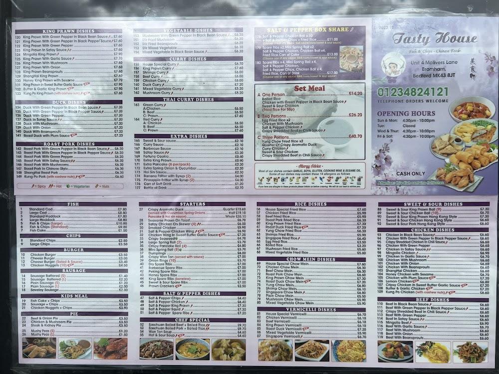 Tasty House is strategically situated in the heart of Bromham, Bedford, at Unit 4 Molivers Lane. This charming takeaway offers a unique fusion of Chinese cuisine and British fish and chips, making it a go-to dining destination for families and food enthusiasts alike. The accessibility features, including a wheelchair-accessible entrance and ample parking, enhance its appeal to a diverse clientele. A casual dining atmosphere welcomes visitors to come and enjoy delicious meals with friends or family, especially during busy lunchtimes or cozy dinner times. Tasty House is open daily with convenient hours that cater to both lunch and dinner plans, welcoming visitors whether they're grabbing a quick bite or indulging in a sit-down meal. Its popularity among locals is reflected in the steady stream of customers that fill the place, often challenging the perception of takeaway dining.